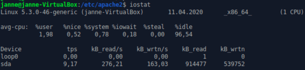 Ja teistestä huomaamme, että systat toimii ja pystymme käymään katsomassa apachen iostatsit.